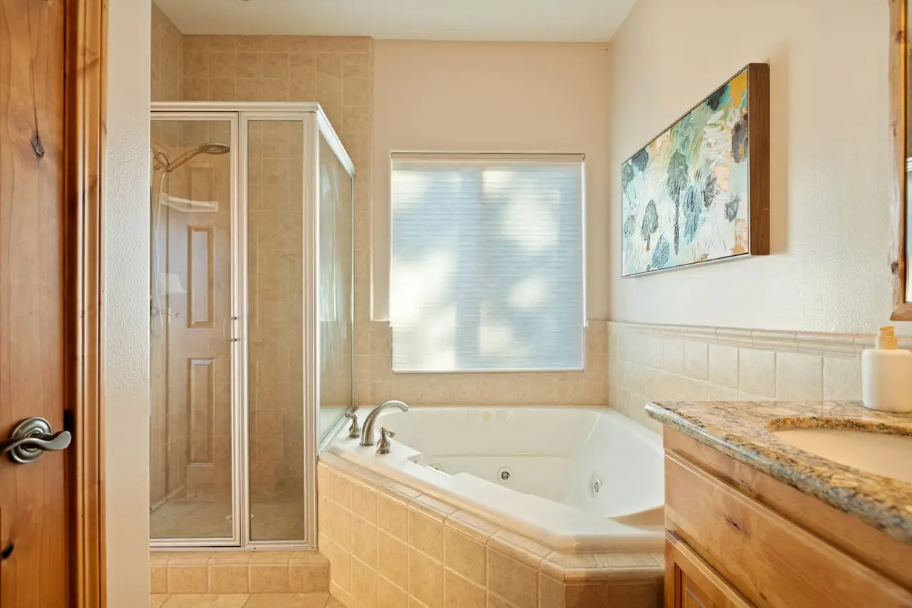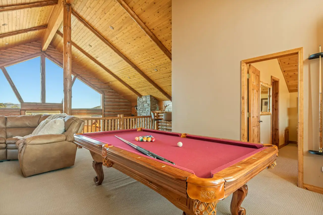 For game nights and laid-back afternoons, the upstairs loft offers a dedicated entertainment zone complete with a pool table,100-inch TV, arcade games, a wet bar, and a mini fridge. It’s a favorite spot for families and groups looking for a second gathering space, whether you’re hosting a friendly tournament or settling in for a movie.